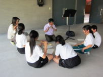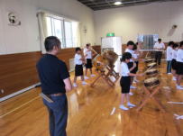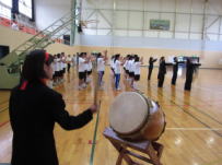 鰍沢中では毎年1年生が「鰍沢ばやし」の練習をして、地域に伝わる伝統を引き継いでいます。総合的な学習の時間に地域の青栁さんはじめ4名の講師が指導してくださいます。練習1回目でしたが、上達ぶりが早いとほめていただきました。