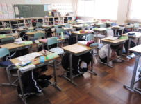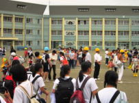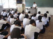 防災週間にちなんで本校でも防災訓練が行われました。地震想定の避難訓練でしたが、生徒は静かに素早い非難をしました。しっかりした態度で感心しました。校長先生は「震災は忘れた頃にやってくる」というお話しをされました。大切な心構えとして皆の心に刻まれたことと思います。