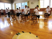 鰍沢ばやしの練習も今回で5回目となりました。1年生は集中して取り組んでおり、上達ぶりもすごいです。熱気もあふれ、ただでさえ熱い練習場の気温が一層上がった気がします。8月13日の発表に向けて順調に練習はすすんでいます。講師の先生方からも「今までで一番上達が早い」とお墨付きをもらっています。がんばれ1年生!