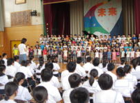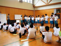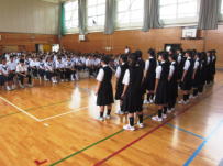 毎年行われている小中合同レクが行われました。中学の学友会の生徒が中心となって計画・運営してくれました。小学生の合唱を聴いたり、ミニ運動会で玉入れやリレーなどを行い、楽しいひとときを過ごしました。小中学生が手をつないでいたり、一緒に笑ったりする姿はたいへん微笑ましいものでした。小中の絆がまた一つ太くなりました。