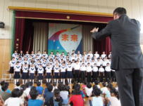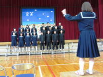 1年生「大地の歌」、2年生「名付けられた葉」、3年生「こきりこ」の各学年の発表はそれぞれ努力と工夫のあとがたくさん感じられた発表でした。特に3年生の「こきりこ」は雪深い山里の情景が目に浮かぶ圧巻の発表をしてくれました。全校合唱の「流浪の民」もソロパートが光る厚みのある歌声でした。職員合唱「いざたて戦人よ」もあり、中身の濃い発表会になりました。お忙しい中、お集まりただいた保護者の皆様、来賓の皆様、鰍沢小学校5・6年生および職員の皆様、ありがとうございました。