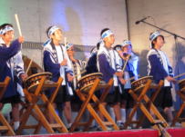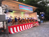 練習を積んできた1年生が「鰍沢夏祭り」に参加し、鰍沢ばやしの演奏を行いました。夕方、学校に集まり練習をした後、会場のステージで多くの聴衆を前に鰍沢ばやしを披露しました。10分ほどの演奏でしたが、それぞれの楽器の音が調和し、聴きごたえがありました。夏祭りに参加したことで、地域の皆さんに鰍沢中を知っていただくよい機会となりました。
