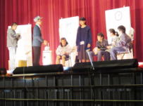 町のサポートの元、毎年恒例の文化教室がますほ文化ホールで行われました。愛知県豊田市からお笑い劇団「笑劇派」をお招きして、携帯電話のモラルに関係した喜劇を観ました。最初から最後まで笑いの連続で楽しい時を過ごしました。観終わった後にはケータイやスマホについて考えさせられました。