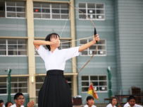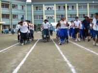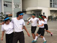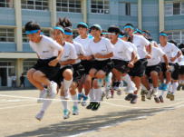 2日目午後からは体育部門の競技を行いました。「長縄跳び」「障害物競走」「綱引き」「二人三脚リレー」「むかで競争」が、縦割りチーム対抗・学級対抗で行われました。上級生と下級生の助け合う姿やクラスで力を合わせ競技する姿に感動しました。競技後には「常笑」のテーマのように笑顔があふれていました。失敗して涙を流す姿とともに記憶に残りました。
