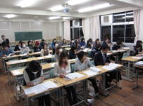3年生の保護者を対象に「高校入試説明会」を開催しました。いよいよ進路決定の時期となり、保護者も真剣に聴き入っていました。また、入試のシステムを早めに知りたい1・2年生の保護者も数名参加していました。かぜも流行りだしたので、3年生は体調に気をつけてがんばって下さい。