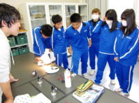楽しく学ぶ体験型の科学実験教室「サイエンスラボ」が3年生を対象に行われました。山梨大学の島崎洋一先生と学生さん4名を講師にお招きし「エネルギー」について学ぶ授業を2時間実施していただきました。生徒たちは体験を楽しみながらエネルギーのこと、環境のことについてたくさん学んでいました。島崎先生、生命環境学部の学生の皆さんありがとうございました。