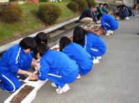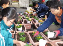 花と弘済会からいただいたチューリップの球根をプランタに植えました。ボランティアの生徒と用務員さん、職員で一緒に心を込めて行いました。花が冬の間にどのくらい育ってくれるのか楽しみです。また、チューリップは冬の寒さを耐えて来年の春にきれいな花をつけてくれることでしょう。入学式に間に合うといいですね。