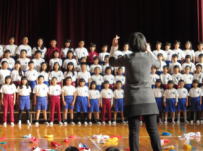 市川高校合唱部の皆さん、鰍沢小学校全校児童の皆さんにも参加していただき、小中高が連携した合唱交流会が鰍沢小体育館で行われました。それぞれの素晴らしい合唱に、聴衆は大きな感動をいただきました。こうした行事がもっと増えるといいですねという感想も頂きました。