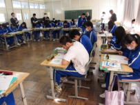 3年生は先週の20・21日に行われた3学期期末テストを1・2年生が受けました。3学期のまとめであると同時に1年間を振り返るテストでもあります。全員が真剣に答案用紙に向かっている姿は緊張感がありました。納得のいく結果が得られるように願っています。