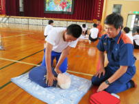 PTA事業部の皆さんが中心となって、PTA心肺蘇生法講習会と親睦球技会が行われました。講習会には峡南北部消防署の方を講師にお招きして、エピペンやAEDの使い方、熱中症への対処法を学びました。熱心に教えて下さり、大変わかりやすくためになる講習会となりました。親睦球技会では3チームに分かれてソフトバレーボールを行いました。各チーム1勝ち1敗となる熱戦が繰り広げられました。大いに親睦をはかることができました。ご参加くださった保護者の皆様、ありがとうございました。