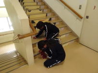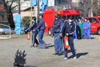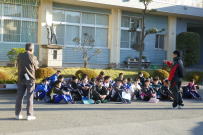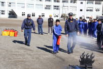 冬になり,乾燥した日が続きます。火災を起こさないことはもちろんですが,万一のために避難訓練を行っています。今年は消防署から5人の方に来てもらい,消火器の使い方を指導していただきました。また火災が起きたときの注意事項なども専門家から伝えてもらいました。
