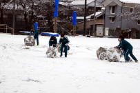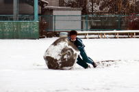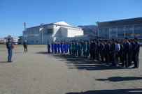 初雪が降り,2時間遅れの始まりとなりました。先生たちも朝から雪かきをして,生徒の歩くところや駐車場は除雪できました。グランドは北側で,校舎の陰になり,毎年なかなか解けません。体育の授業で生徒たちが大きな雪だるまづくりをし,かなり雪を減らすことができました。最初は楽しそうでしたが,けっこうきつかったと思います。