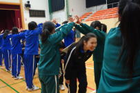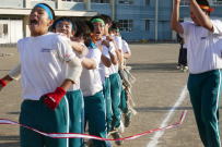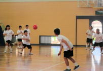 学友会で企画したTEAM対抗ドッジボール大会が開かれました。全校が3チームに分かれ,熱戦が繰り広げられました。最後に一人残った1年生が1分以上を逃げ切って,MVPをもらうなど,笑顔に包まれた温かい会でした。