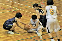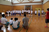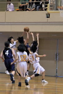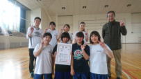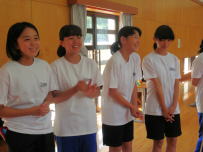 部員3名に文化部や所属してない生徒を加え,少人数ながらがんばってきました。浅川中との試合は,30-83の結果でしたが,出せる力を精一杯出したいい試合でした。走り続けて足をつりながらもやり続けようとする姿に感動しました。助っ人で出てくれた生徒も点を決めるなどみんなで戦えた試合でした。