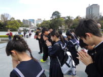 初日は広島での平和学習でした。原爆資料館でのみんなの,資料を見たり,こまめにメモをとったり,真剣に話を聞いている姿から,おそらく事前学習で学び,想像していたものをはるかに超えているということが感じ取れました。