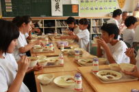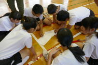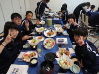 鰍朋祭ではチームごとでTEAM(部門)活動,体育の部の競技と,1~3年の縦割り活動を行いました。日頃から週番活動やレクレーションなどをともにやっています。今回はチームに分かれて給食を食べました。普段とは違う雰囲気の中で楽しんでできました。