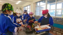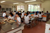 1年生は家庭科の授業で,初めて料理を作りました。豚のショウガ焼きでしたが,できばえも素晴らしく,味もよかったようです。