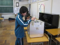 理科の実験でペットボトルロケットを飛ばしました。3年生が楽しそうにやっていて,かなり遠くまで飛んで盛り上がっていました。作用反作用の力を学ぶものでしたが,圧力ってすごいなと思いました。休み時間前で他学年の生徒も見ていて,「3年生になってあれやりたいな」とうらやましそうでした。