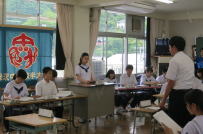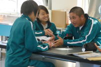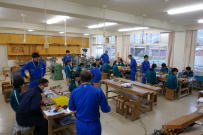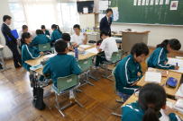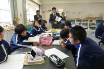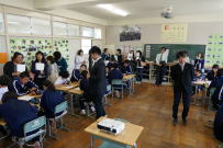 町の教育委員会の方々が本校に訪れ,授業の様子を参観されました。1年生は総合での鰍沢囃子の練習,2年生は音楽で合唱に取り組み,3年生は技術科で布の素材について学んでいました。教育委員の方からは生徒が一生懸命授業に取り組んでいる姿を評価していただきました。
