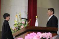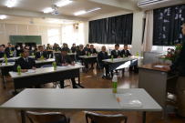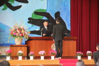 志村町長様を始めとするご来賓の方々に出席いただく中で,第70回という節目の入学式が開かれました。新入生の態度はとても立派でした。代表の生徒からは『最高の鰍朋祭を16人の仲間と助け合って,先輩や先生方に支えられて,つくっていきたい』などの決意が,堂々と述べられました。