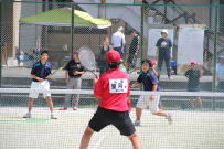 男女別会場で開催されました。男子は1試合目を勝ち抜いたのは1名だけでしたが,フルセットで負けてしまうなど惜しい試合でした。それぞれが課題をつかみ,次につなげると決意を語っていました。女子はベスト8まで進んだ選手もいて,よい結果が得られました。最後の総体に向けてがんばってほしいです。