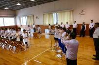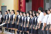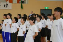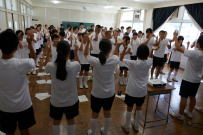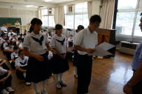 73日間の1学期が終了しました。校長先生からは1学期のがんばりを評価していただき,さらに目標を上に設定して努力することについて話がありました。各学年代表の生徒は,自分に任された責任を果たすこと,学級目標をめざして進んでいること,1学期に頑張った取組などについて,立派に発表しました。地区陸上の表彰や,体験入学生のお別れの挨拶もありました。明日からは長い夏休みとなります。充実した休みにしてほしいです。