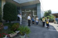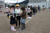 保育園、小学校とともに地震に関する注意情報が発表されたと想定しての引き渡し訓練を行いました。生徒たちも防災頭巾をかぶっててきぱきと行動し、スムーズにできました。保護者の方がお仕事等もある中、時間に合わせてきていただき、おかげで短い時間の中で引き渡しを完了することができました。