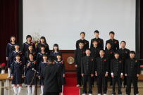 来年度入学する新入生と保護者の方への説明会です。1年生の歓迎の合唱,学友会の校舎案内や学校説明。2年生は校歌を披露して,少しでも学校のことを知ってもらい,入学を楽しみに思ってもらいたいとがんばりました。新入生も少し安心できたのではないでしょうか。