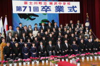 1年間,鰍沢中をリードしてきてくれた3年生が卒業の日を迎えました。晴れ渡った青空,体育館の凜とした空気,卒業生の旅立ちにふさわしい朝です。涙を見せながらも,思いを届けようと呼びかけ,最後まで立派に歌いきった3年生。保護者の方,来賓の方からも「素晴らしい卒業式だった」と口々に語られました。最後まで【鰍中魂】を見せてくれていった卒業生。自ら選んだ道を精一杯歩んでいってほしい。