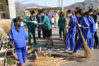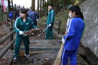 この日から,1・2年生のみの学校。さくら祭りが行われる大法師公園までの階段の清掃を行いました。TEAM Bが準備から片付け,活動の指示も行い,新しい鰍沢中のスタートを感じました。作業はたくさんの落ち葉を片付けるのはかなり厳しいものでした。でも自分たちで積極的に活動する姿はとても立派でした。