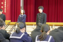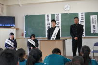 学友会も3年生からバトンが引き継がれます。立合演説会では,2年生が候補者はもちろん,応援演説者も本当に立派に思いを伝えてくれました。来年度も『鰍中魂』を引き継ぎ,さらに高めていってくれると確信しました。