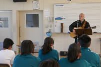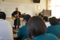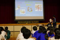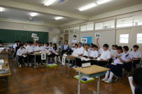 町の保護司をされている方が『社会を明るくする運動』として,『命』について,『しあわせ』について,語りと歌で伝えてくれました。 生徒の感想より 「命について深く考えるきっかけとなりました。『たった一つの命だから』という歌には感動しました。『糸』の詞もとてもよかったです。自分が今ここにいられることを感謝したいです。」