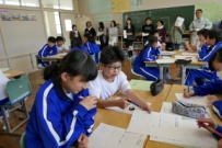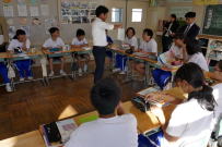 この日は台風21号で2時間遅れとなりました。1年生の英語の授業を,全校の先生たちで見て,多くのことを学びました。1年生も元気に英語の授業に参加し,とても気持ちのよい雰囲気で,見に来てくれた先生もほめてくれていました。