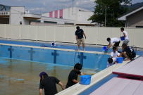 3年生がプールの清掃をしました。なかなか取れない汚れもあって大変でしたが,みんな楽しそうにやっていました。
