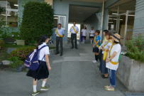 町の青少年育成町民会議の皆さんが数名お見えになって,生徒たちに声をかけていただき,あいさつ運動を行いました。生徒たちもたくさんの大人の中で少し緊張しながら,さわやかに挨拶していました。