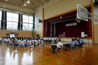1年生が総合で取り組んでいる「鰍沢ばやし」夏祭りで披露しました。緊張しながらも,保存会の方にもお手伝いいただき,ステージでお客さんの前で立派に発表しました。