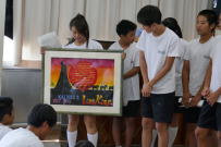 総体に向けて,全校生徒で壮行会を行いました。各部の熱い思い,気合いの入ったかけ声,選手宣誓,どれも思いがあふれるものでした。応援では何日も練習した応援リーダーの力あふれる演舞に引き込まれました。また全校で歌う「全力校歌」は体育館にも心にも響き渡るものでした。総体では気持ちを込めてがんばってほしいです。