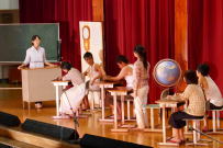 1年生の鰍沢囃子の演奏で幕を開けた2日目。2年の演劇「夏休み」は現在と過去を行き来するという難しい表現が工夫されていて,平和について考えさせられました。1年生は「棄権」という身近な劇を自然に笑いの要素も入れながら演じてくれ,今後が楽しみです。3年生はライオンキング。壮大なミュージカルに挑戦し,すばらしい演技と歌で観客を魅了しました。完成度の高い,思いのこもったものでした。