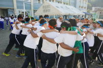 「鰍朋祭に向けて,みんなで気持ちを高める」大事なことだけどなかなかできないことでもあります。学友会本部の人たちが,大切なことを確認しながら,どんな思いでやるのかを伝えてくれました。各部門,各学年からも思いが語られました。最後には円陣を組んで,みんなが肩を組んで,心をつないで,締めくくりました。本番が楽しみです。
