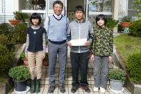 隣にある鰍沢小学校の6年生が育てた「菊」を二鉢いただきました。6年生代表の3人が届けてくれました。玄関で大事に育てたいと思います。ありがとうございました。
