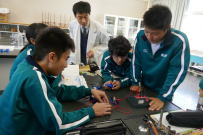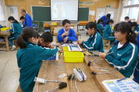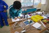 2年生の技術科授業の一環として,関電工の方からライトをつける電気回路作りを教えてもらいました。とてもいい機会になったと思います。