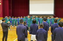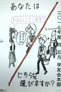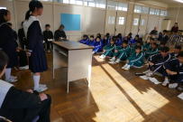 学友会の取り組みで毎朝,全生徒が分担して朝のあいさつ運動を行っています。寒い中なのに,笑顔で明るいあいさつがあり,気持ちよく1日が動きだしています。