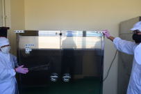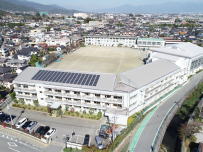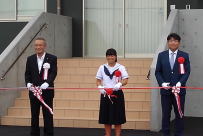 富士川町学校給食センターが完成しました。今日は大安吉日,その竣工式が行われました。「竣工式」とは建築物が無事に完成したことを関係者に披露し,協力していただいた方々に感謝の気持ちを捧げ,建築物の末永い繁栄を祈願する式典です。町の中学生を代表して,本校から生徒1名が参加し,テープカットに加わりました。ここのところ続いていた雨も今日は一休み。給食センターの完成を祝ってくれているかのようです。鰍沢中でmade