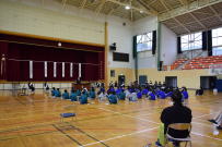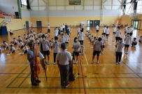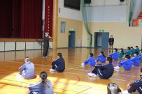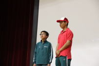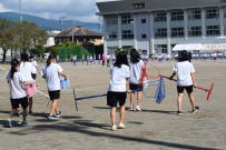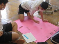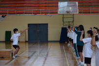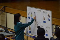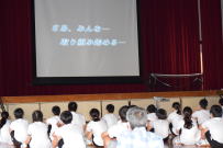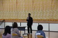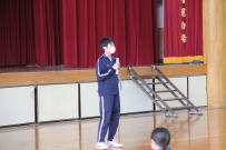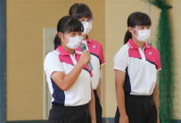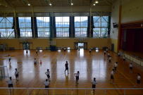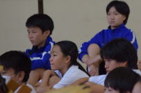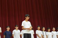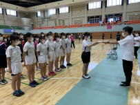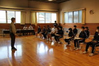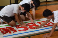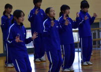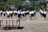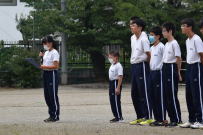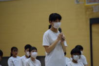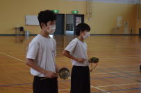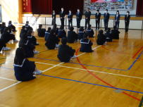 待ちに待ったテニス・バドミントンの大会が近づいて来ました。来週末に峡南地区大会が,再来週以降に県大会が控えています。今日は,大会前に行われる壮行会の練習が昼休みに行われました。応援団は2年生!てきぱきと応援の流れの説明や動作の説明をしてくれました。壮行会当日は,1・2年生から3年生へ精一杯の応援を届けられればと思います。