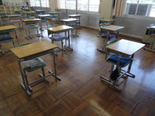 来週の月曜日からいよいよ学校が再開します。学校再開に向けて,みなさんが安全に学校生活を過ごせるように,知恵を絞ったり,他の良いお手本を参考にしたりしながら色々な手立てを講じています。例えば,食事後の歯磨きでは,各学年ごとに使用する水道場を指定し,更には水道の間隔を1つ空けて使ってもらうことにしました。また,順番待ちで密が発生しないように一定の間隔(ソーシャル・ディスタンス)をとって並んでもらえるように廊下にテープをはりました。一番,試行錯誤したのは,「いかにして教室での密を避けるか」です。これまでの横1列をずらして配置して2列にし,隣の人との間隔を広げてみたり,縦の間隔も可能な限り広げて,教室めいっぱいを使って机と椅子を配置しました。これで十分とは考えていませんが,現状できる最大限の策は講じたつもりです。月曜日から始まる学校生活の中では,新たな課題が見つかるかもしれません。その時には,学校・生徒・保護者のみなさん・地域が1つになって,子どもたちにとって最善の手立ては何なのかを共に考え,実践していけたら幸いです。このような混乱期だからこそ,みんなの心を1つに合わせて,乗り越えていけたらどんなに素敵でしょう。それでは生徒のみなさん,週末は健康に気をつけてくださいね。月曜日に会えるのを楽しみにしています。