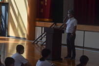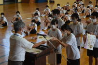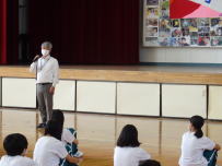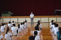 連休明けの本日6時間目に県の環境整備課の方々にご来校いただき「廃棄物適正処理学習会」を行いました。学習会は,環境整備課や報道機関など多数の方々にお集まりいただくということで体育館で行われました。学習会の中では,途中にクイズをはさみながら「不法投棄は絶対しない」・「ごみがごみを呼ぶ」・「捨てればごみ,分ければ資源」の3つのポイントを確認しました。私たち一人ひとりの意識次第でごみは減らすことが可能です。今日の学習会で得たことを胸に自分にできることを考えていきましょう。