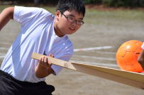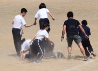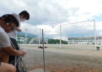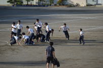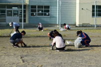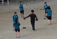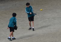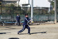 本日の午前中は薄曇りの肌寒い日となりました。校庭では2年生が体育の授業でソフトボールの打撃練習(トスバッティング)を行っていました。体育の先生に加えて担任の先生も参加して,秩序が保たれた中にも和やかさを感じる穏やかな時間が流れていました。