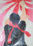 写真(カメラ)が発明され,それまで光や影を工夫し,リアルに見たままに描くことが主流だった絵画の世界は大きな影響を受けます。20世紀になると色々な表現方法を模索する動きが出てきます。今日のHPで紹介するのは,2年生の美術の授業で行った現代美術入門編として,チャイコフスキーの「くるみ割り人形」を聴きながらそのイメージを色や線で表現したものです。色の美しさや線の動きの面白さ,形の楽しさなどを受けとめてもらえたら幸いです。