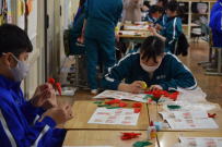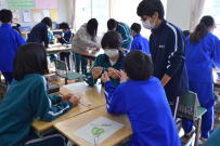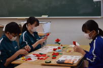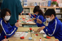 2月も第1週が過ぎていきました。鰍沢中学校では卒業式で3年生が胸にかざすコサージュを1・2年生が手作りしています。そして今年もコサージュ作りをする季節がやってきました。今日の6校時,1・2年生が合同で,3年生に感謝の気持ちをこめてバラのコサージュ作りを行いました。3年生への感謝の気持ちがコサージュという形あるものに変わっていくのと同時に,来年度,鰍沢中の中心となる1・2年生の距離も縮まったように思えます。3年生の卒業は来月11日です。1・2年生の作ったコサージュ,3年生はきっと喜んでつけてくれると思います。