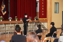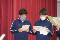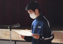 本日の6時間目に第2回学友会総会が行われました。第2回学友会総会では,ここまでの学友会活動のまとめが行われるとともに現本部から新本部への引き継ぎが行われます。今年度は新型コロナウイルスによる臨時休業や多くの制限があり,「例年通り」が通じない不安の多い特別な年になりました。しかし,今,振り返ってみると鰍沢中学校では例年に見劣りしない,むしろ鮮やかに印象に残る素晴らしい学友会活動が行われてきました。本日の総会も大変素晴らしい会になりました。現本部のみなさんに敬意を表するとともに,新本部を中心とした新生鰍沢中学校の今後に期待をしたいと思います。